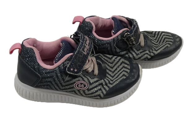 • Tmavomodro-šedo-růžové vzorované třpytivé textilno/koženkové botasky s logom barbarella vel. 26