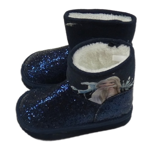 Tmavomodré semišové zateplené papučky so trblietkami a Elsou Disney vel. 25