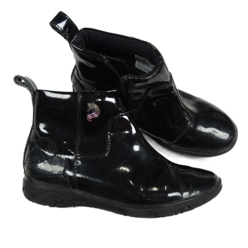 Čierne koženkové lesklé členkové é topánky Clarks vel. 27