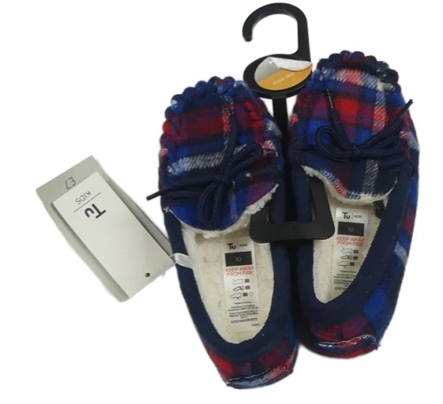 Nové - tmavomodro-červeno-biele kockované zateplené domáceé papučky s mašlou Tu vel. 28