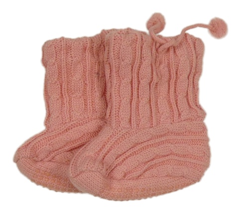 Ružové vzorované pletené zateplené papučky s bambulkami vel. 27