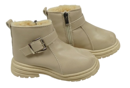 Svetlobéžové koženkové členkové zateplené topánky s přezkou vel. 27