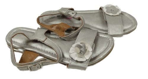 Nové - stříbrné koženkové sandály s 3D květem walkx vel. 30