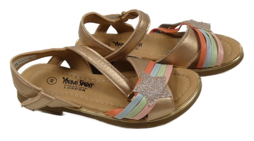 Pudrovo-zlato-hnědé koženkové sandály s hviezdičkou a farebnymi pruhmi Young Spirit vel. 30