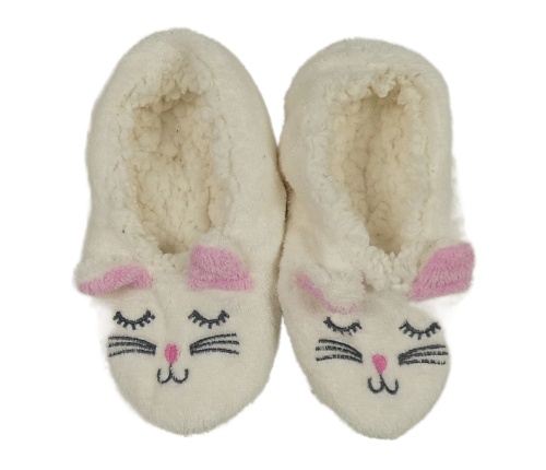 Smotanové plyšové zateplené papučky s kočičkou vel. 32