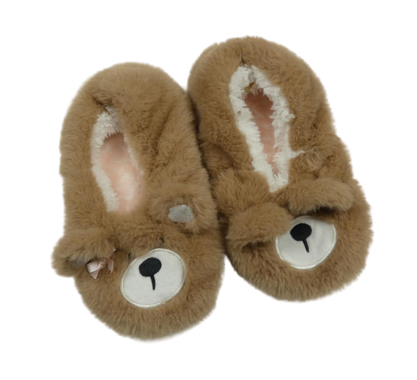 Hnedé chlpaté zateplené papučky s medvěďom