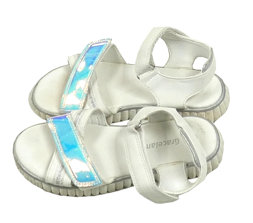 Bílé koženkové sandály s metalickým pruhom Graceland vel. 33