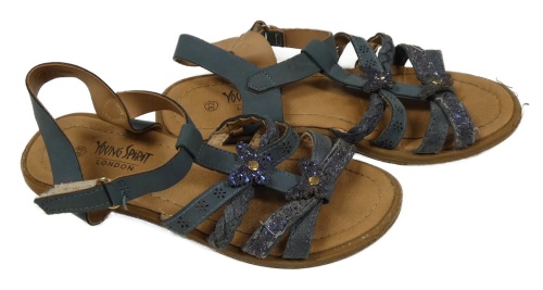 Modrošedé koženkové sandály s motýly Young Spirit vel. 33