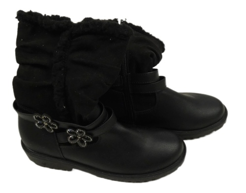 Nové - černé koženkovo/textilní kozačky s kvety s kamíny vel. 34
