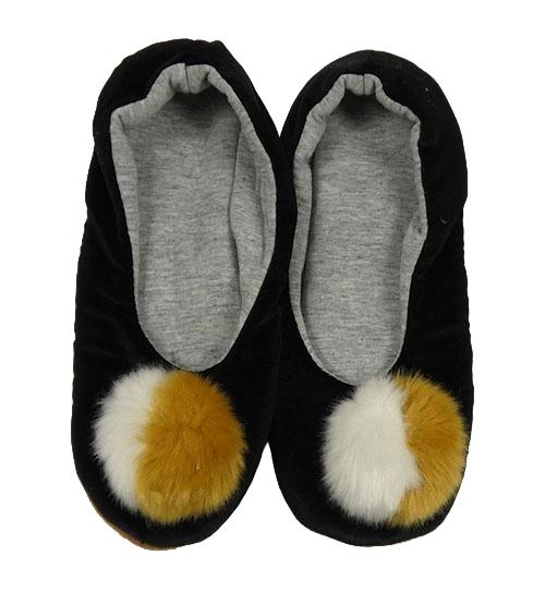 Čierne zamatové domáceé papučky s bambulí vel. 35