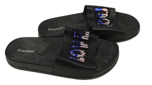 Černé gumové pantofle s nápisom s flitrami Graceland vel. 36