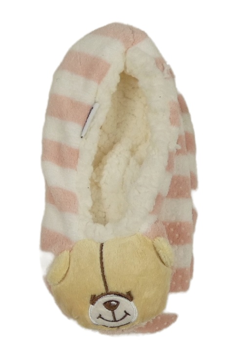 Nové - Bielo-ružové pruhované plyšové zateplené papučky s medvedíkmi