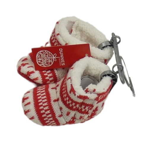 Nové - Červeno-biele vzorované pletené zateplené papučky St. Bernard vel. 15