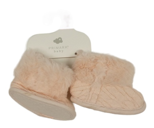 Nové - světlebroskvové vzorované pletené zateplené papučky s kožešinou PRIMARK vel. 15