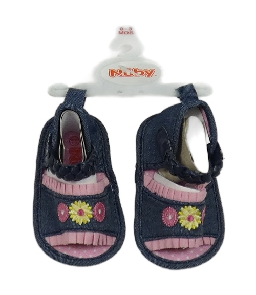 Nové - Tmavomodré sandály riflového vzhledu s kvietkami