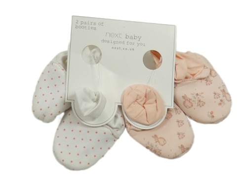 Nové - 2x - Bílé s puntíky + ružové bavlnené cápačky so zajačikmi Next vel. 16,5
