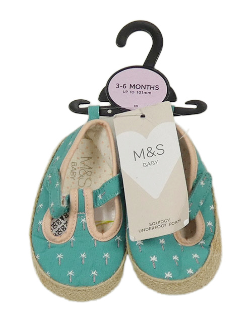 Nové - jadeitovo-světlerůžové espadrilky s palmami M&S vel. 16
