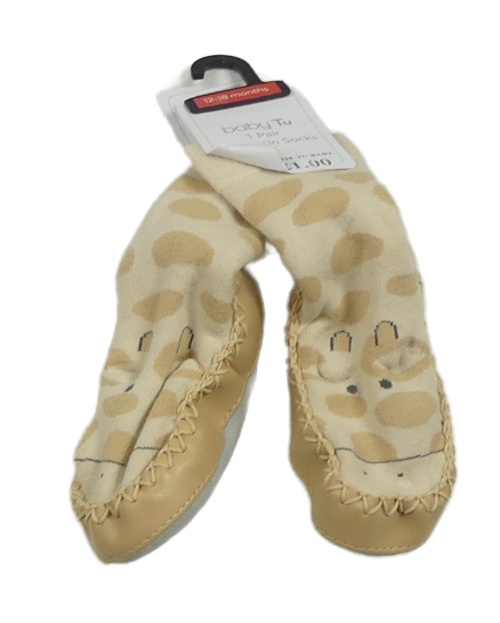 Nové - béžové koženkovo/semišové cápačky s ponožkou so žirafou Tu vel. 20