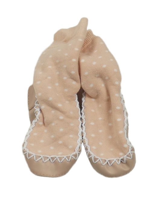 Svetloružové bodkovaná é ponožky s koženou podešví