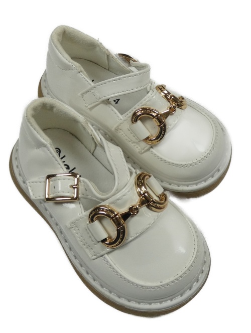 Biele lakované koženkové topánky so sponami Kelsi vel. 20