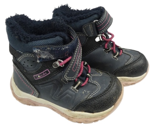 Tmavomodré koženkovo/textilní kotníčkové zimní boty vel. 22
