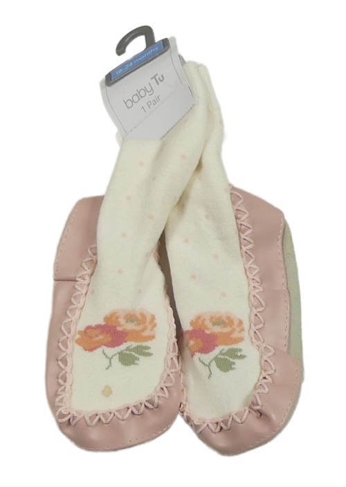 Nové - staroružové koženkovo/semišové cápačky so smetanovou ponožkou s růží Tu vel. 22