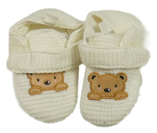Nové - smotanové pletené papučky s medvědy vel. 22