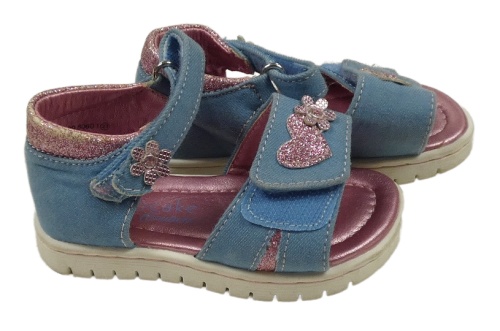 Modro-starorůžovo/třpytivé textilní sandály so srdiečkom a květem Cupcake vel. 21
