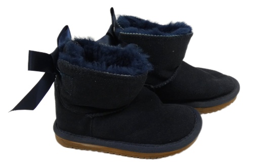 Tmavomodré semišové zateplené papučky s mašlí vel. 24