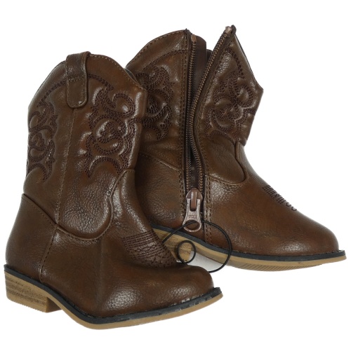 Nové - Hnědé koženkové kozačky s výšivkou vel. 23