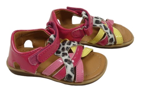 Nové -tmavorůžovo-bílo-žluto-hnědé koženkové sandály so vzorem vel. 23