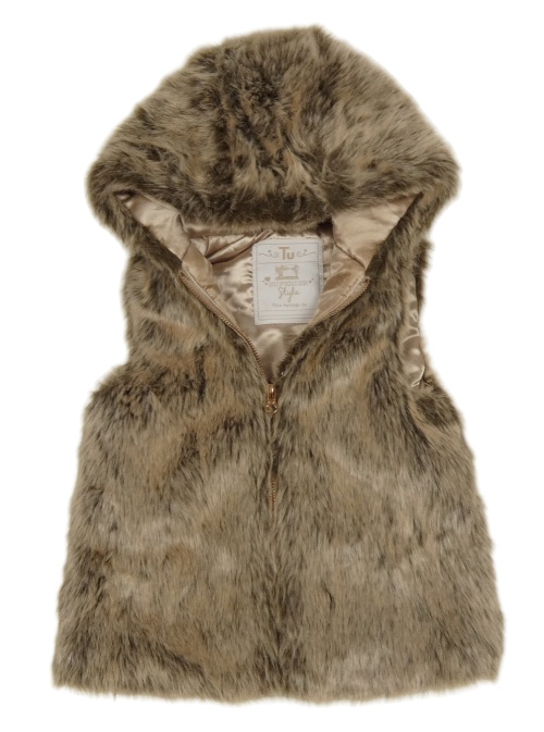Hnedá kožušinová zateplená vesta s kapucňou Tu
