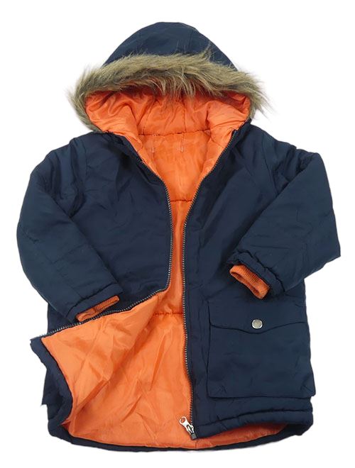 Tmavomodrá šušťáková zimná bunda s kapucňou s kožešinou