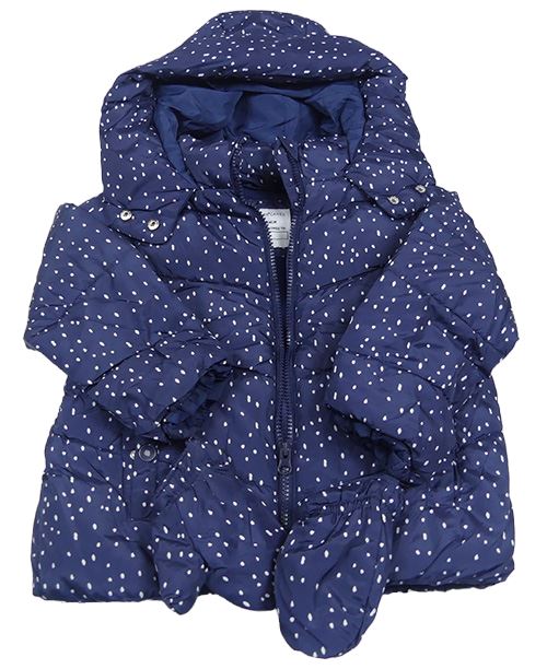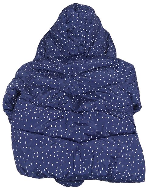 Tmavomodrá šušťáková prešívaná zimná bunda s bodkami a kapucí + rukavice Primark