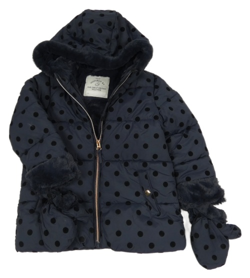 Tmavomodrá bodkovaná á šušťáková zimná bunda s kapucí + rukavice George