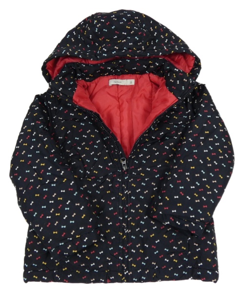 Čierna šušťáková zimná bunda s mašličkami a odopínacíá kapucňou Name it