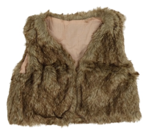 Béžovo-hnedá kožušinová podšitá vesta