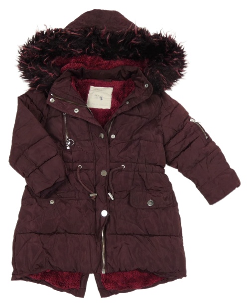 Vínová šušťáková zimná parka s kožešinou a kapucňou Matalan