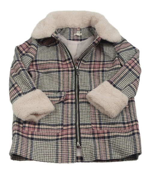 Bielo-čierno-modro-ružový vlnený podšitý kabát s kožúškom River Island