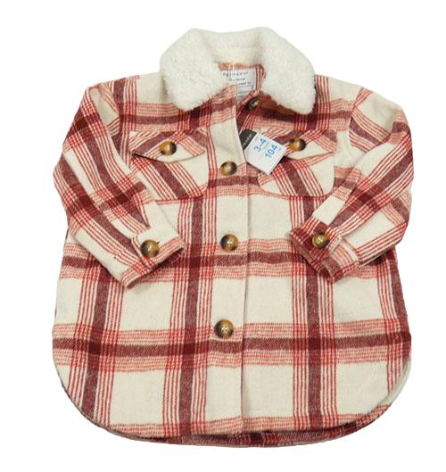 Nové - Krémovo-vínovo-červená košeľová bunda s beránkem Primark