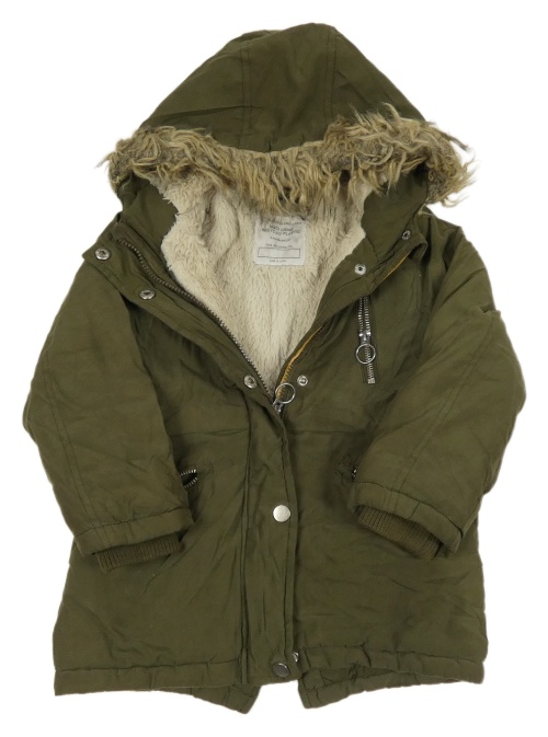 Khaki šušťáková zimná parka s kapucňou s kožešinou PRIMARK