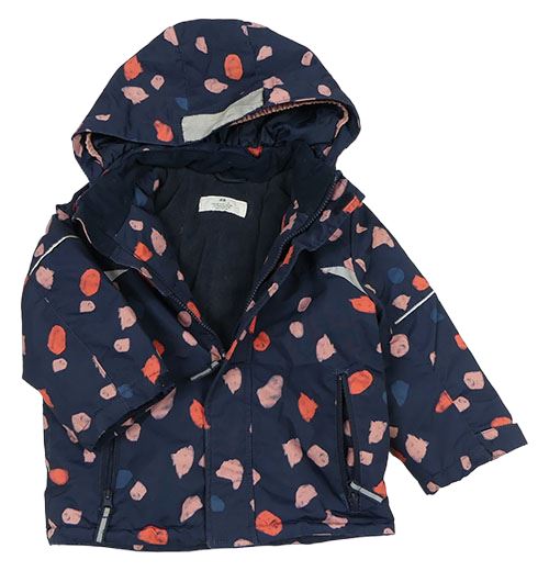 Tmavomodro-farebná šušťáková zimná bunda s bodkami a kapucňou H&M