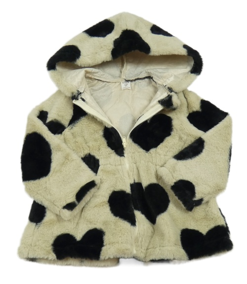 Smetanovo-čierna kožušinová podšitá bunda so srdiečkami a kapucňou shein