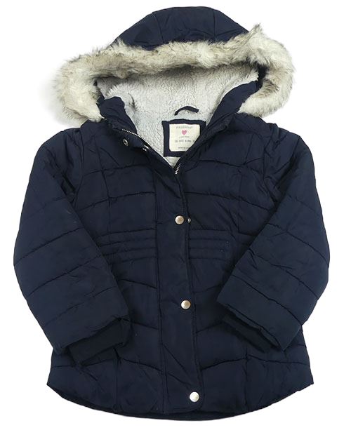 • Tmavomodrá prešívaná šušťáková zimná bunda s kapucňou s kožešinou PRIMARK