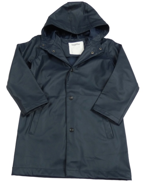 • Tmavomodrý nepromokavý kabát s kapucňou lupilu