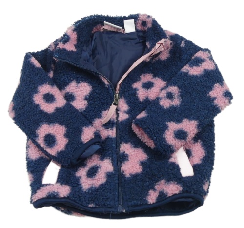Tmavomodro-ružová kvetovaná huňatá pošitá bunda L&D