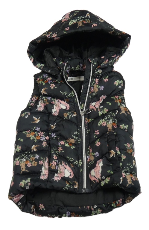 • Čierna šušťáková prešívaná zateplená kombinéza s jednorožcami a odopínacíá kapucňou H&M