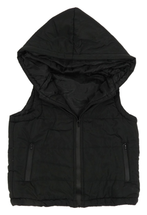 Čierna šušťáková prešívaná zateplená vesta s kapucňou Shein