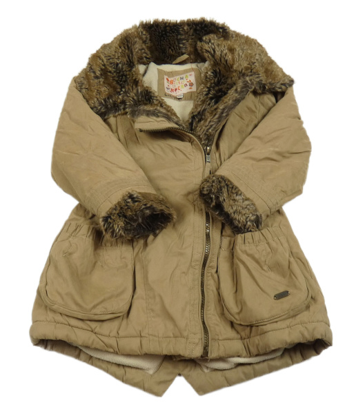 Béžový šušťákový zimný kabát s kožúškom Rocha John Rocha