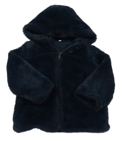 Tmavomodrá chlpatá podšitá bunda s kapucňou